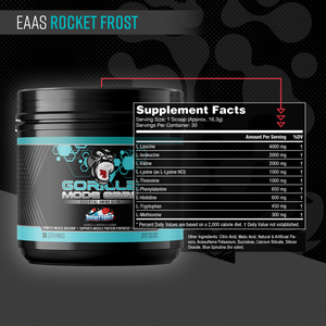 Gorilla Mode EAA’s can be taken before, during, or after your workouts and will aid with muscle protein synthesis, muscle recovery and muscle building. We recommend mixing 1 scoop of Gorilla Mode EAA’s in 12-14 ounces of water, but you can adjust the amount of water depending on your taste preference.