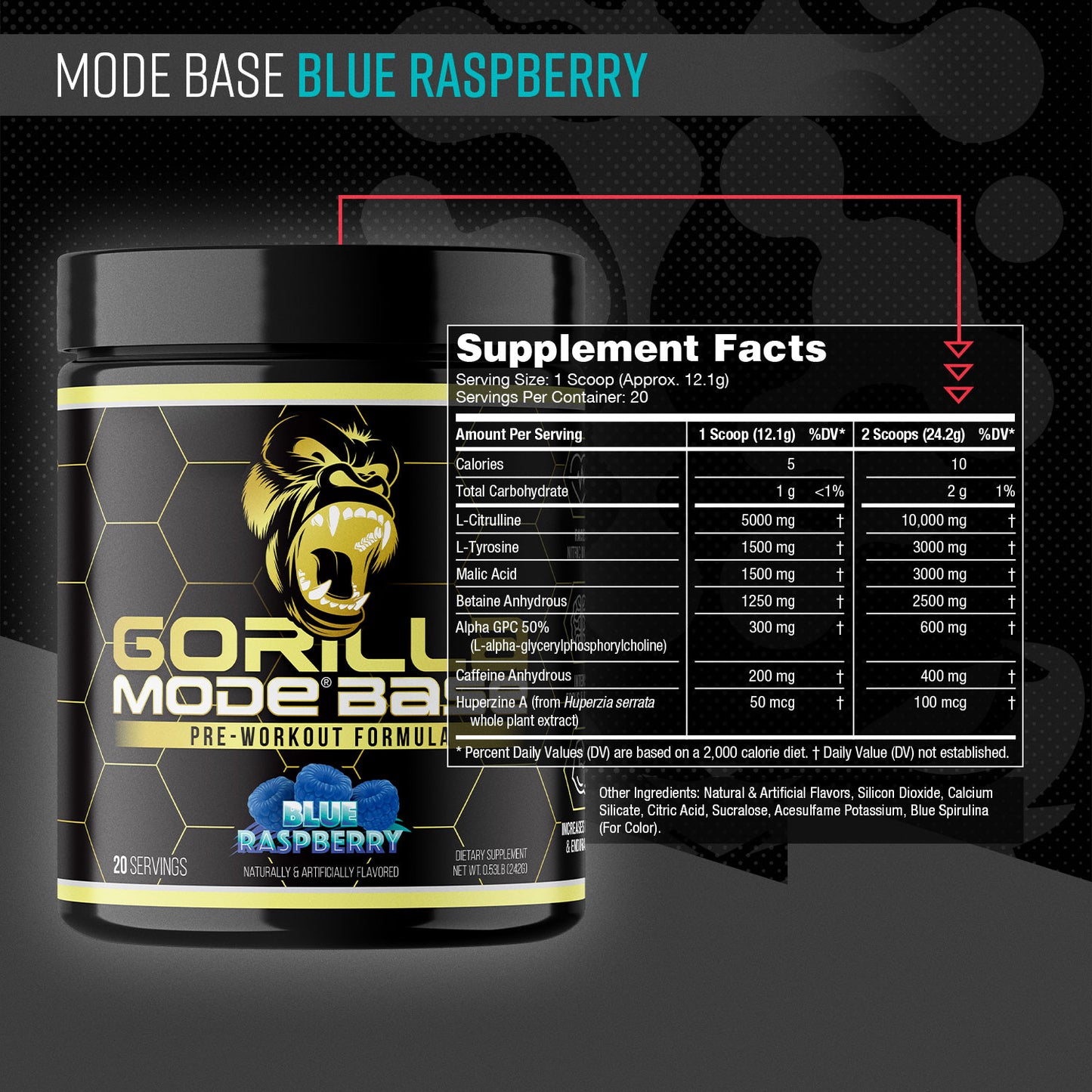 We formulated Gorilla Mode® Base with a concise list of ingredients we consider most impactful for a well-rounded pre-workout.