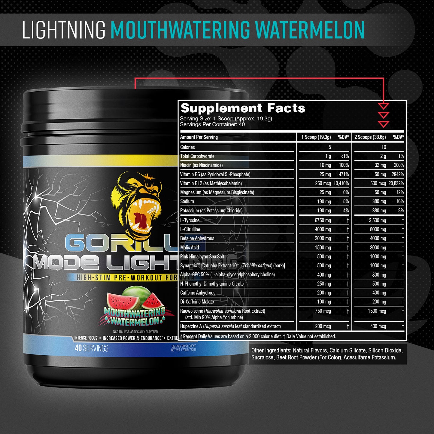 Introducing the most aggressive high-stim pre-workout we've ever released: Gorilla Mode Lightning