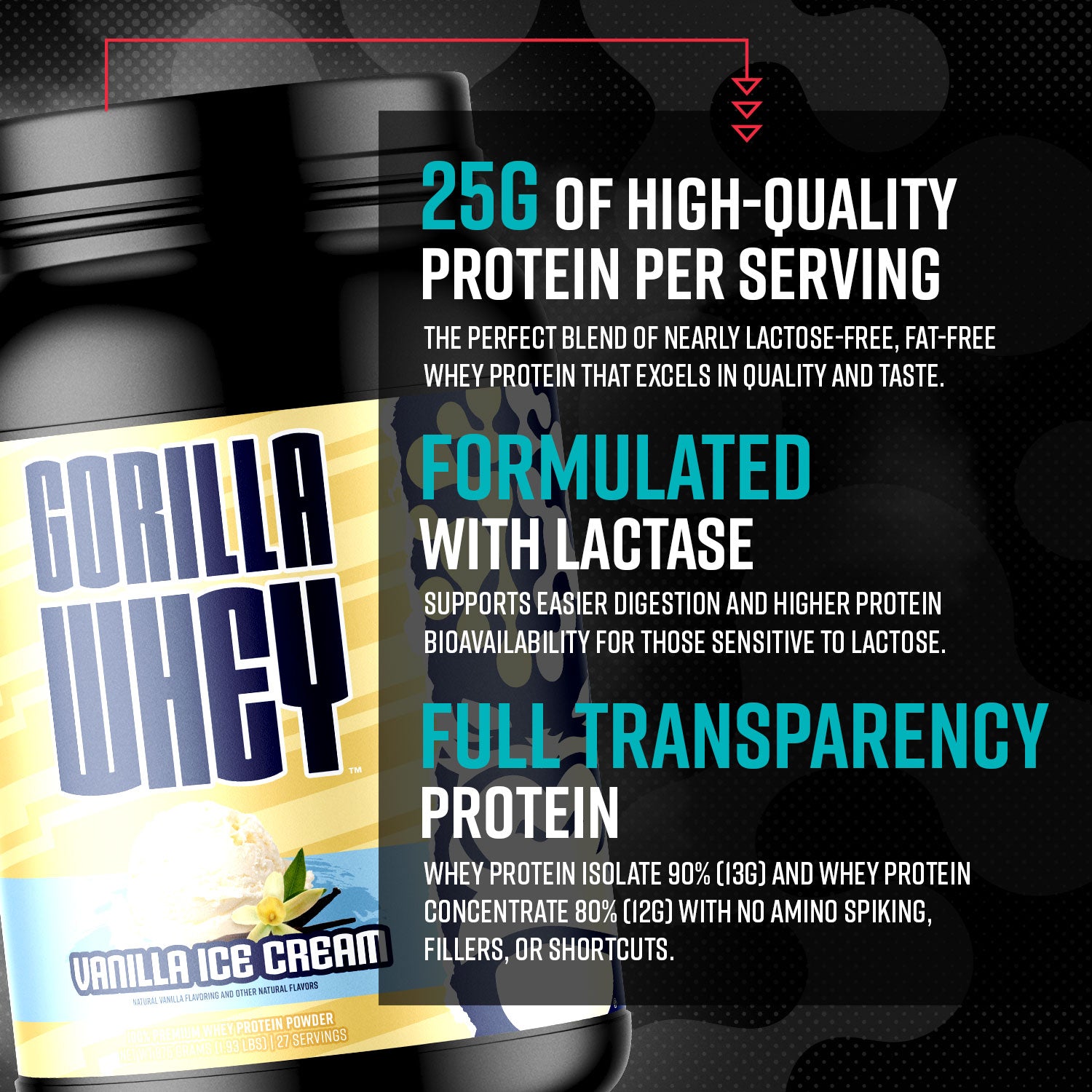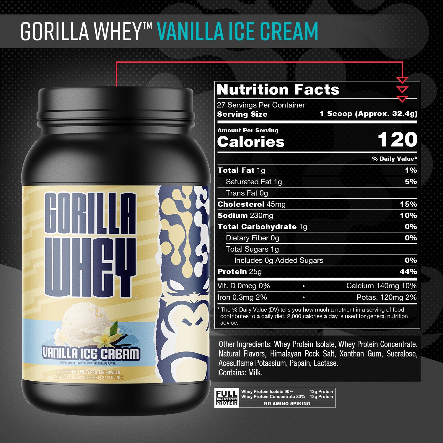 Introducing Gorilla Whey™ — a fully transparent, high-quality protein formula featuring a premium whey isolate and concentrate blend designed for maximum digestibility, flavor, and muscle recovery.
