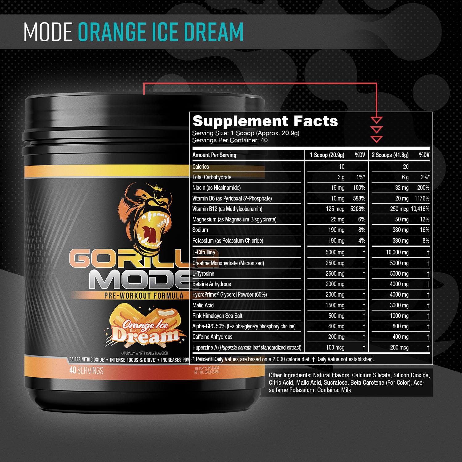 Gorilla Mode® is our flagship comprehensive pre-workout featuring an array of complementary active ingredients at their maximum efficacious dosages.